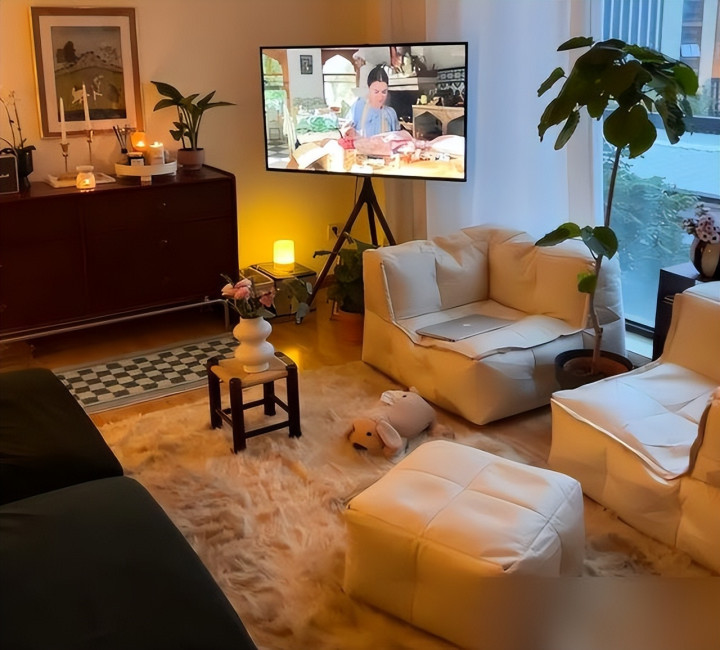 懒人沙发更妙,往地上一摆软乎乎的,像块会“吸人”的云朵。孩子跳上去当蹦床,蹦得老高也不疼;我瘫在上面追综艺,把腿翘到茶几上,比以前正襟危坐对着沙发背爽多了。周末全家挤在上面,我剥橘子,孩子举着玩具讲幼儿园的事,爱人翻着杂志插两句话,那种热乎劲儿,以前沙发在的时候根本没有——你说这才叫“家”吧?不是摆个大家具当摆设,是一家人能凑在一起“乱哄哄”的热闹。