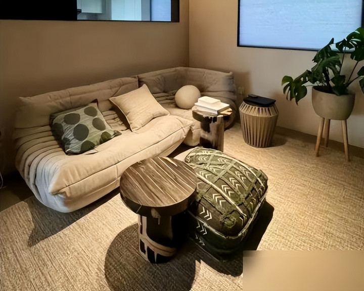 以前装修总觉得“客厅必须有沙发”,咬着牙买了个大款的,占着客厅三分之一地儿,结果用起来全是坑——孩子跑着玩撞了扶手,疼得直哭;沙发缝里的零食渣、头发丝,蹲在那抠半小时,腰都直不起来;夏天坐上去黏糊糊的,冬天刚挨上又凉得一哆嗦;更糟的是有些沙发味儿大,开着窗放半个月,进屋还能闻着股怪味儿,真是花钱找罪受。